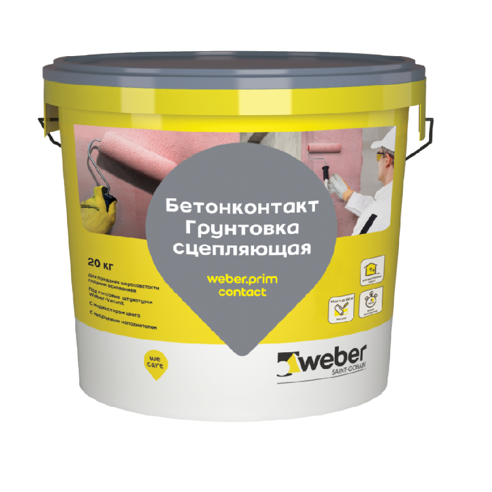 Грунтовка сцепляющая Вебер Прим Контакт (Weber.Prim Contact) улучшает взаимодействие между покрытием и основанием. Создаёт приятную шероховатость, качественно подготавливает стены и потолки для последующего покрытия. Подходит для монолитного бетона, ГВЛ, лакокрасочного покрытия (немасляного и без глянца), ГКЛ, кладок из кирпича, ячеистого и керамзитбетона.